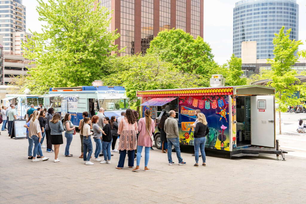 Space for parking (food truck or trailer), flat and accessible surface. Setup time of 30–45 minutes